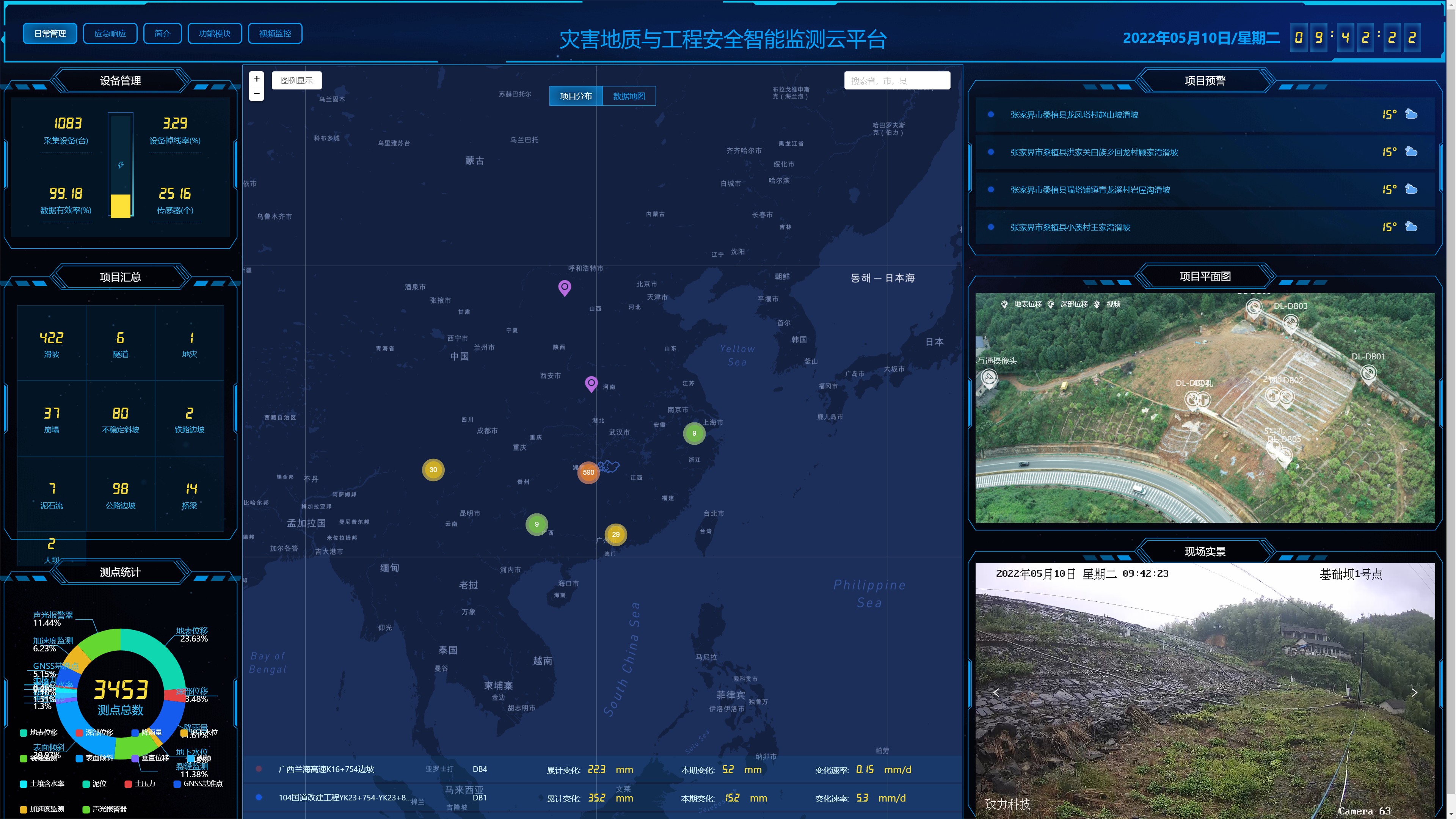 目前,致力云平台已在全国布设监测点3453个,覆盖了全国20余省的400余个边坡、桥梁、隧道、基坑、矿山、大坝、尾矿库、弃土场等,累计发布准确有效预警信息100余次,多次成功预警项目险情,科学指导应急处治,有力保障了人民生命财产和社会安全。