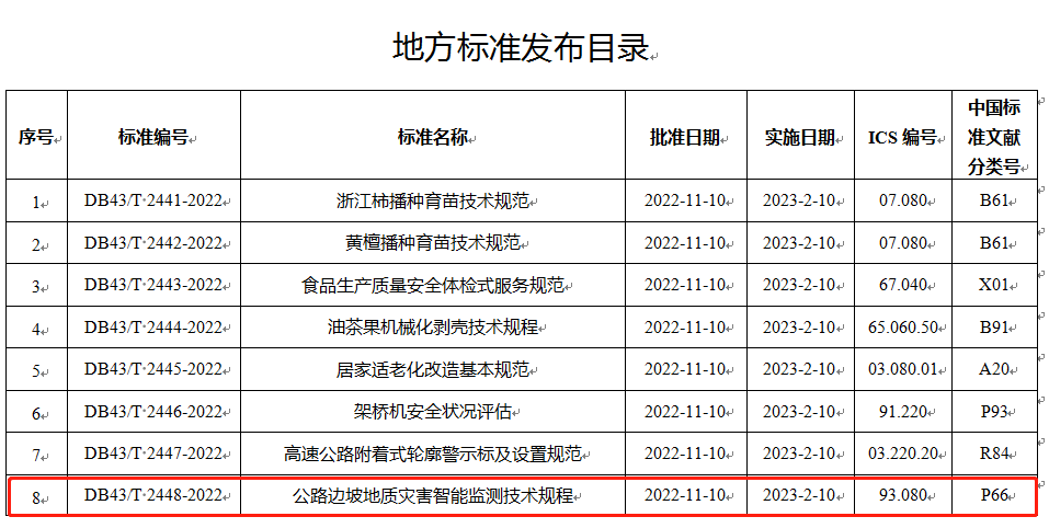近日,由MK网官方站网页版主编,湖南省交通建设质量安全监督管理局、长沙市公路桥梁建设有限责任公司、中南大学、长沙理工大学、湖南省高速公路集团有限公司、湖南省交通规划勘察设计院有限公司、中交第三公路工程局有限公司等单位共同参与编制的《湖南省公路边坡地质灾害智能监测技术规程》(DB43/T 2448-2022)(以下简称《规程》)经湖南省市场监督管理局批准发布,自2023年2月10日施行。